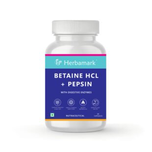 Herbamark Betaine HCL + Pepsin Capsules with Digestive Enzymes | Supports Digestion, Gut Health & Protein Absorption | Helps Bloating & Acidity Relief | 60 Veg Capsules