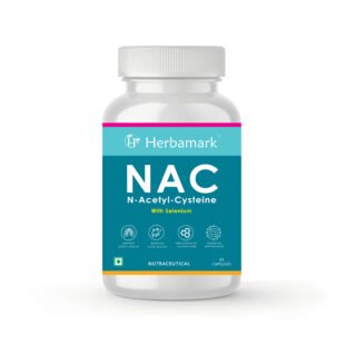 Herbamark NAC (N-Acetyl Cysteine) 600 mg with Selenium Capsules | Powerful Antioxidant & Glutathione Precursor | Liver & Lung Support | Immunity Booster & Detox Support | 60 Veg Capsules