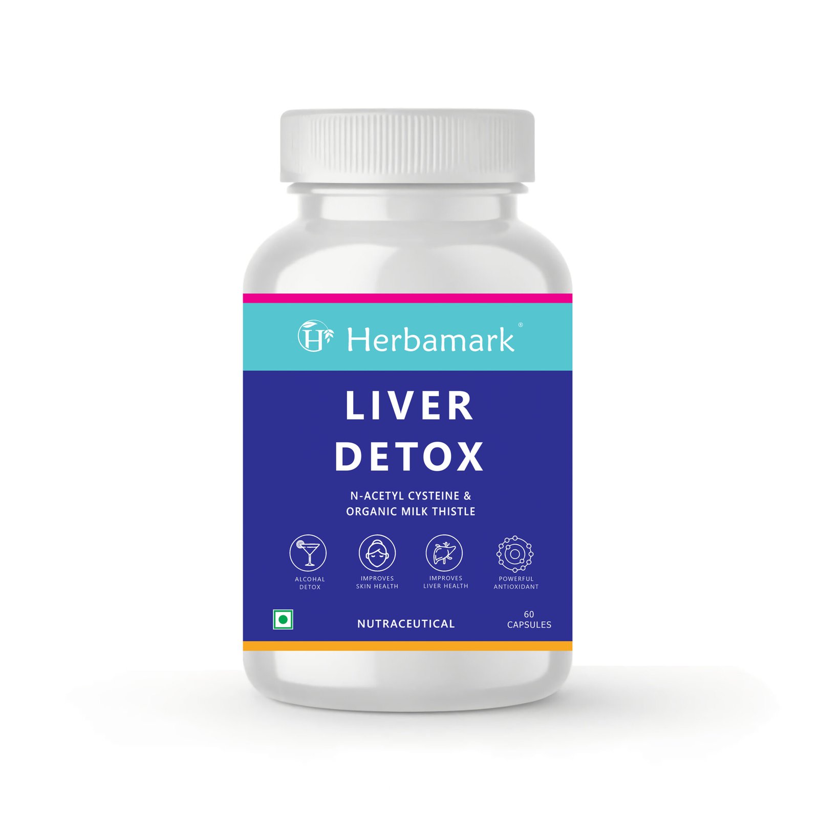 Herbamark Liver Detox Capsules | NAC (N-Acetyl Cysteine) + Milk Thistle Extract | Liver Cleanse & Detox Support | Antioxidant & Skin Health Support | 60 Veg Capsules