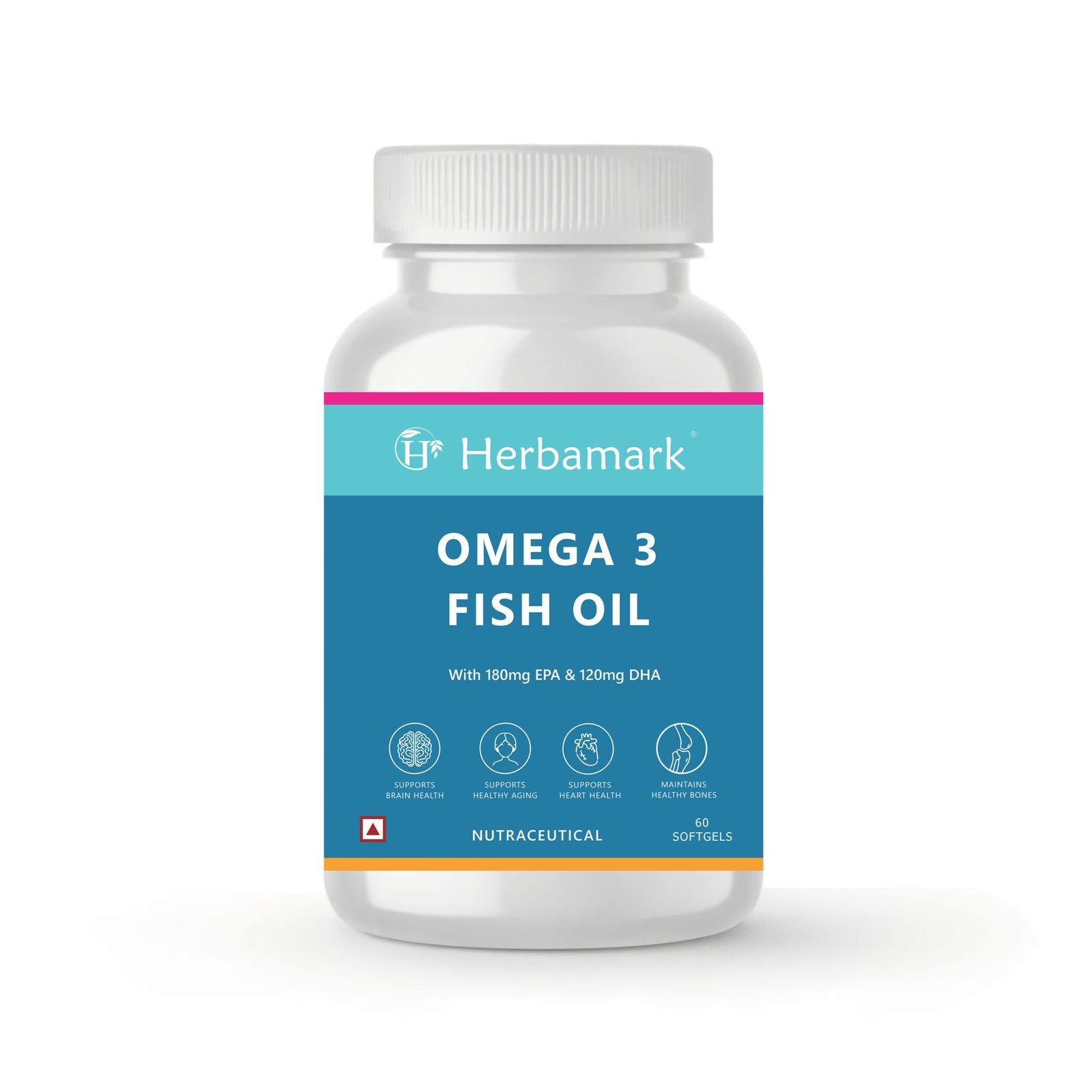 Herbamark Omega 3 Fish Oil 1000 mg Softgels | 700 mg Omega-3 with EPA 180 mg & DHA 120 mg | Heart, Brain & Joint Support | Healthy Aging & Immunity | 60 Softgels